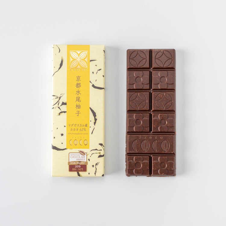 みずみずしい京都水尾柚子とマダガスカル産カカオ62%の組み合わせ。