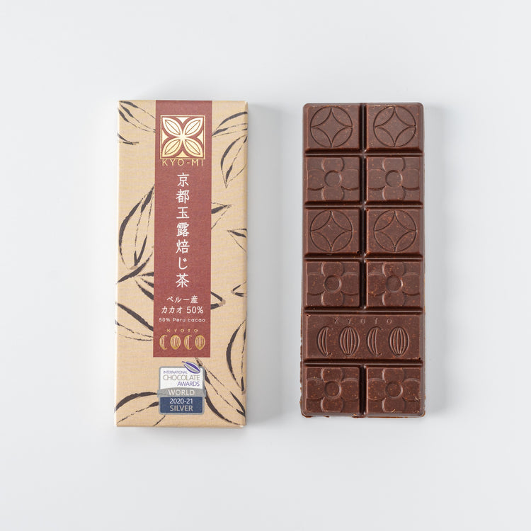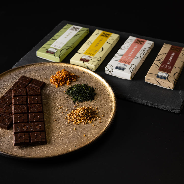 箱を開けた瞬間から煎茶の香りが広がり、ホンジュラス産カカオの軽やかな後味に煎茶の香りと味わいの余韻が続きます。