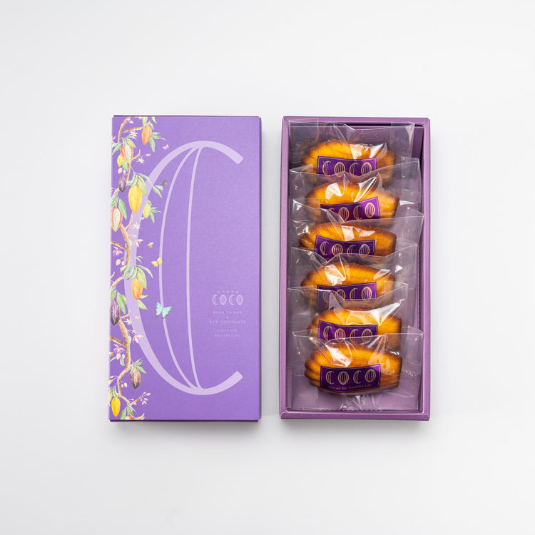 生地には生のレモンを絞ったレモン果汁をたっぷり入れ、レモンの皮も削って入れています。そこにカカオフルーツピューレ(カカオの果肉)も加えることで、より爽やかな酸味と爽快感のあるマドレーヌに仕上げました。