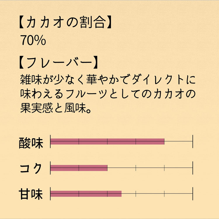 フルーツとしてのカカオの果実感や華やかな風味をダイレクトに味わえます。