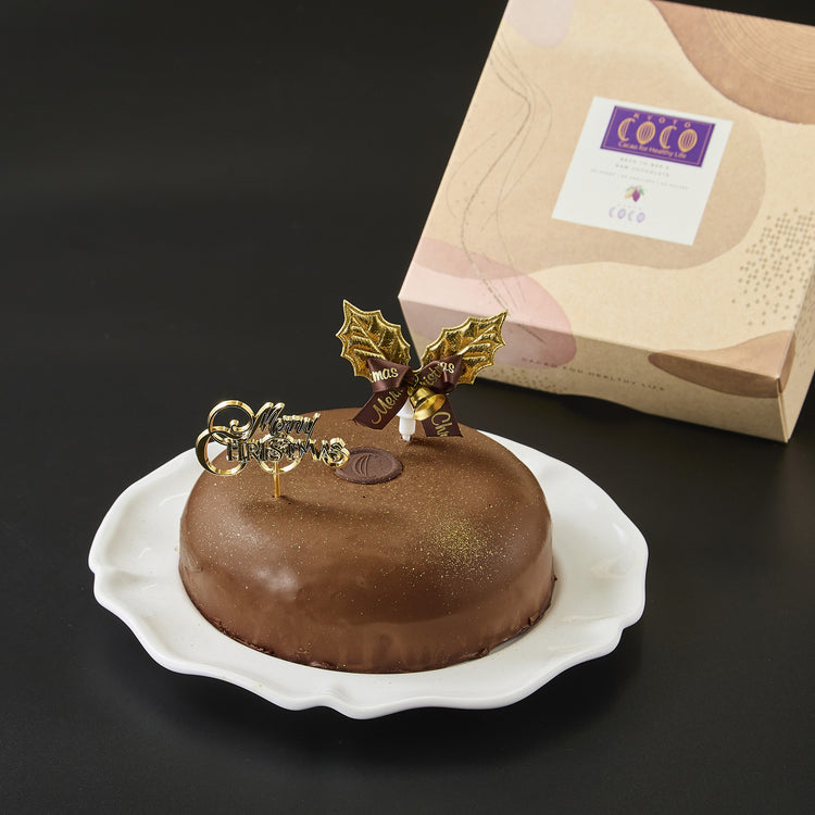COCO KYOTOならではのチョコレートや素材にこだわった、白砂糖不使用・グルテンフリーのクリスマスケーキです。